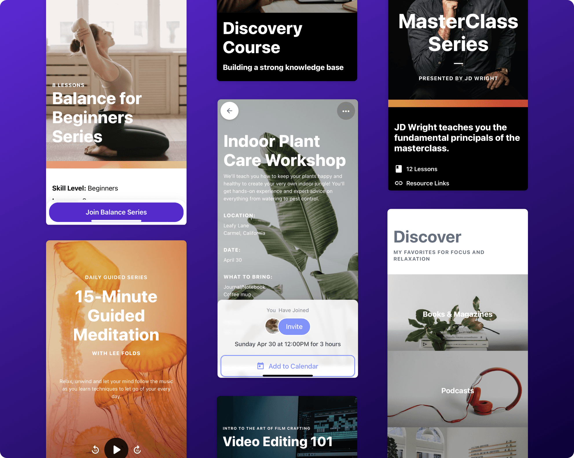 Jumpstart course creation with Movement's fully customizable templates. A diverse library filled with professionally designed, ready-to-use options for educational and video courses, meditations, podcasts and more, you can tailor each template to match your content and style–ensuring your courses align with your brand and resonate with your audience. Plus, with specialized sales page templates, you have an added advantage in marketing and selling your courses, making it easier to attract and convert more students.