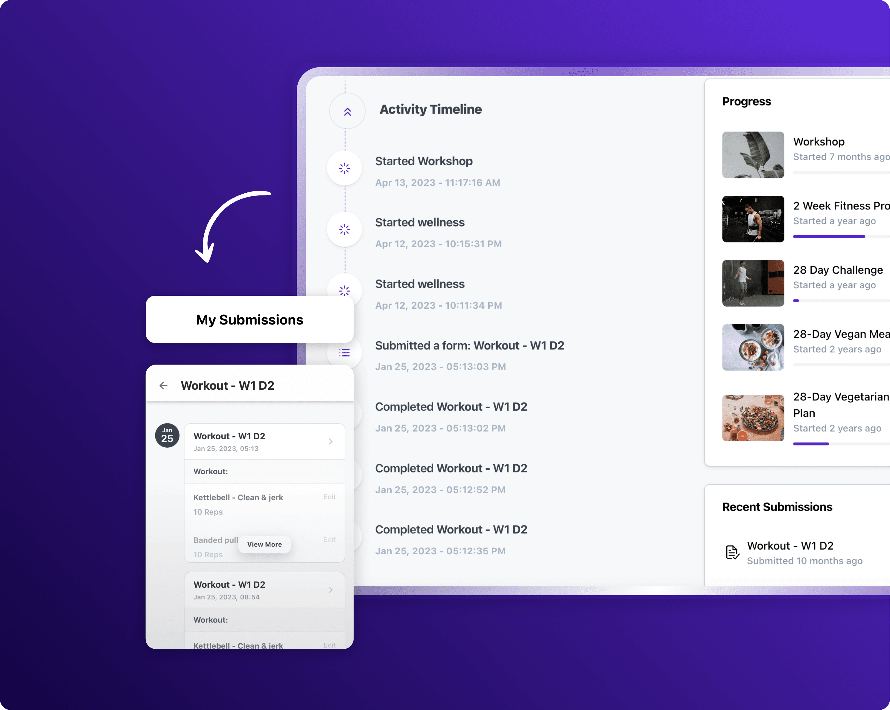 Monitor and celebrate your clients' progress with interactive workout results tracking. This tool empowers both you and your clients to visualize improvements and setbacks, making it a powerful motivator in the path to reaching their fitness goals.