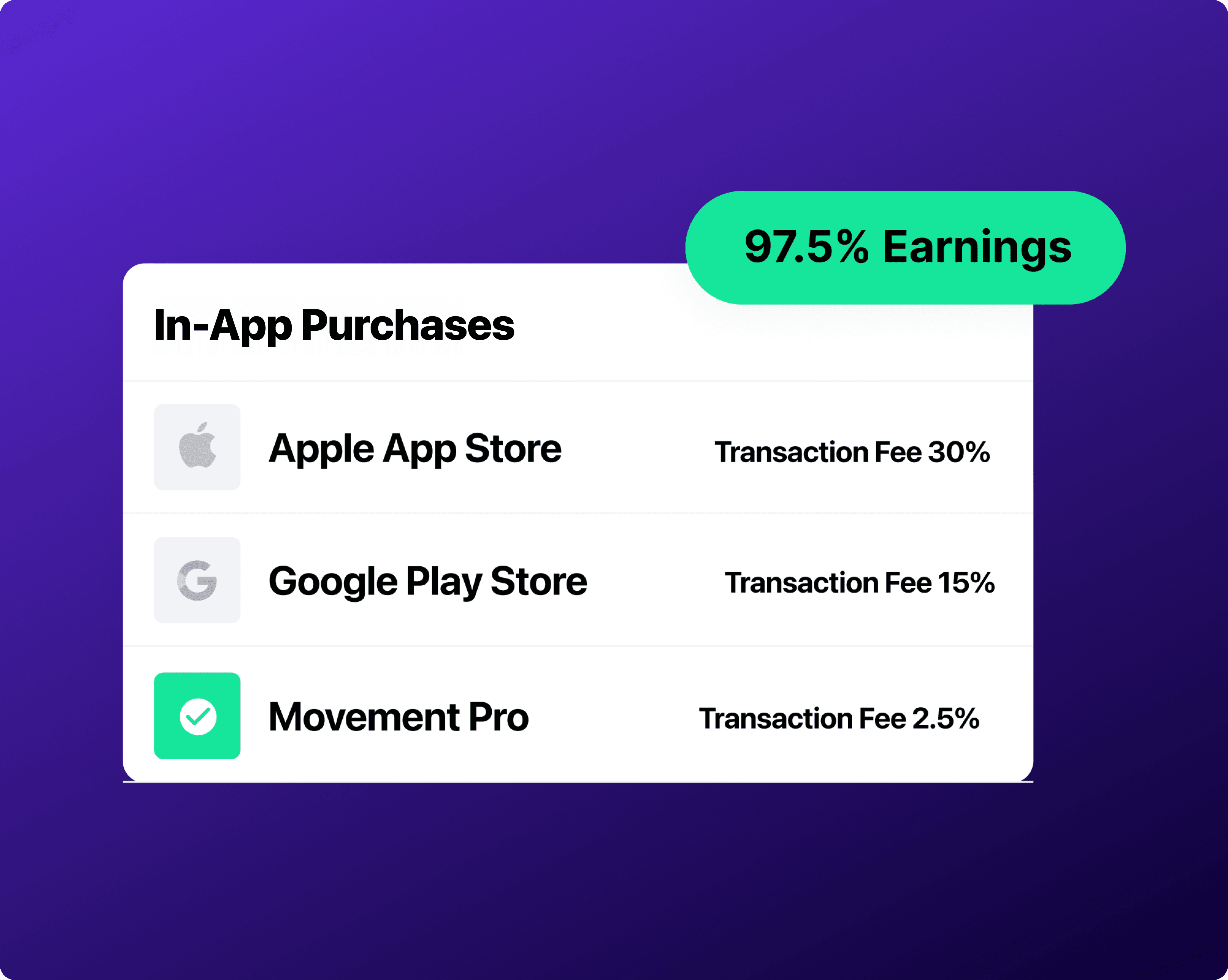 If you're trying to monetise, allowing the App Stores to take 15-30% of your earnings is hurtful to your bottom line and growth. With a community app built with Movement, you can keep up to 97.5% of your earnings to continue reinvesting into a better community.